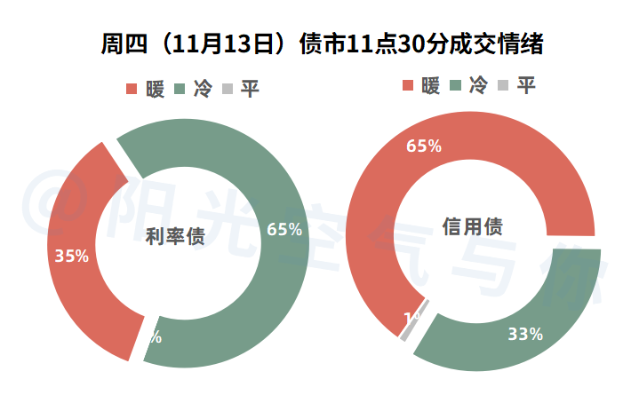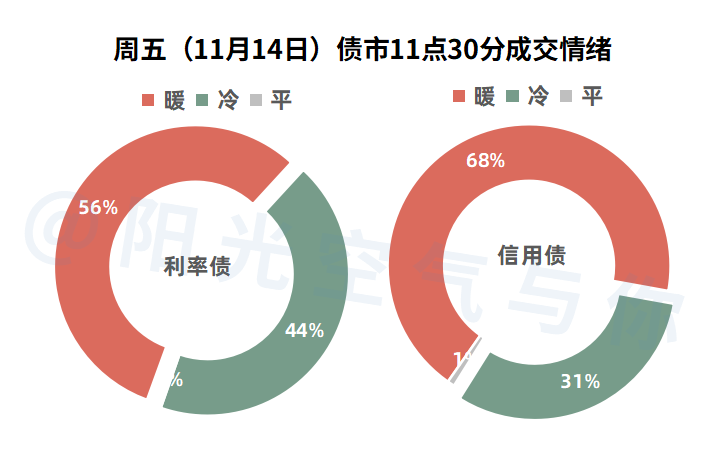 宏观数据上,10月社会消费品零售总额同比,高于预期但是低于前值,10月规模以上工业增加值同比低于前值和预期,所以数据还是偏弱一些。目前10年期国债活跃券收益率小幅上行,但是实际债券盘面还是红的为主的(含昨天17点之后的涨幅)。
