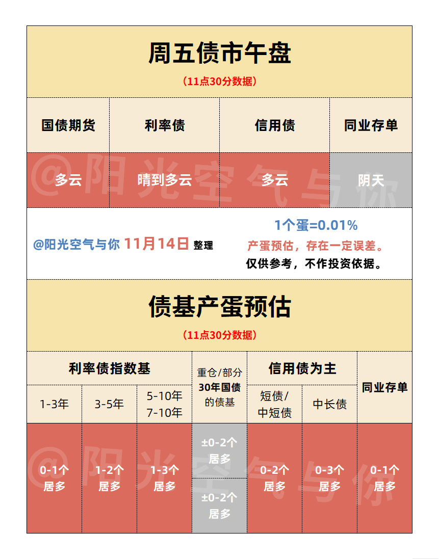 午盘产蛋预估:纯债基金大概率小产蛋,重仓30年国债的基金小产蛋或小碎蛋都有可能。混债基金可能还是碎蛋多一些。