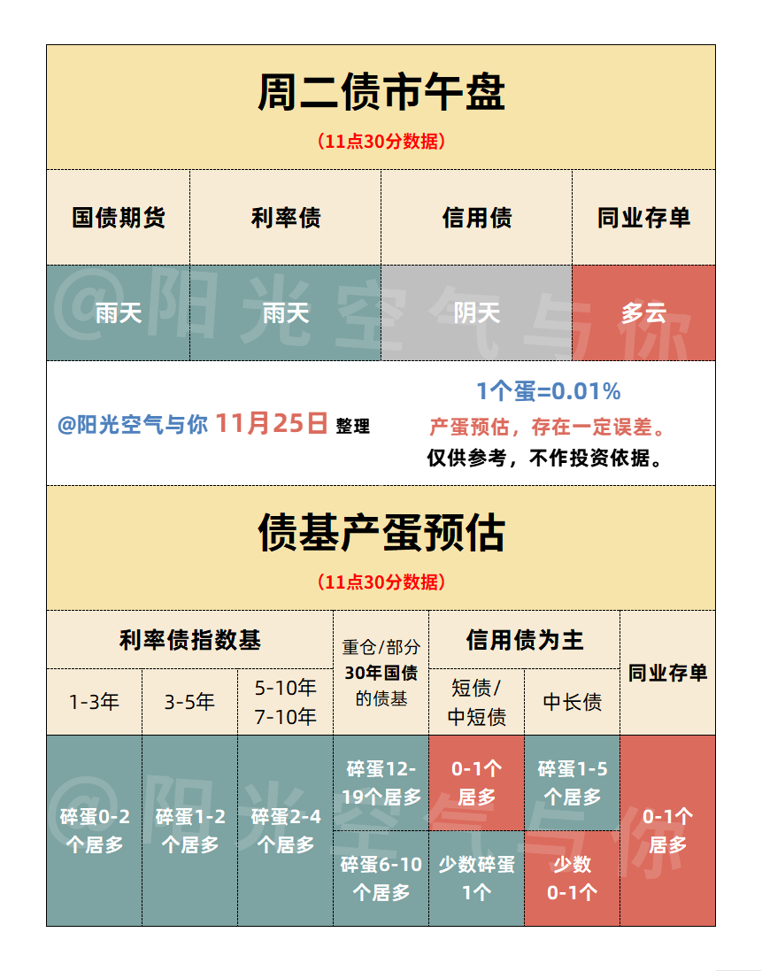 午盘产蛋预估:纯债基金仅信用债为主的短债/中短债和同业存单基金有望产蛋,其他普遍碎蛋。混债基金大多数有望产蛋。