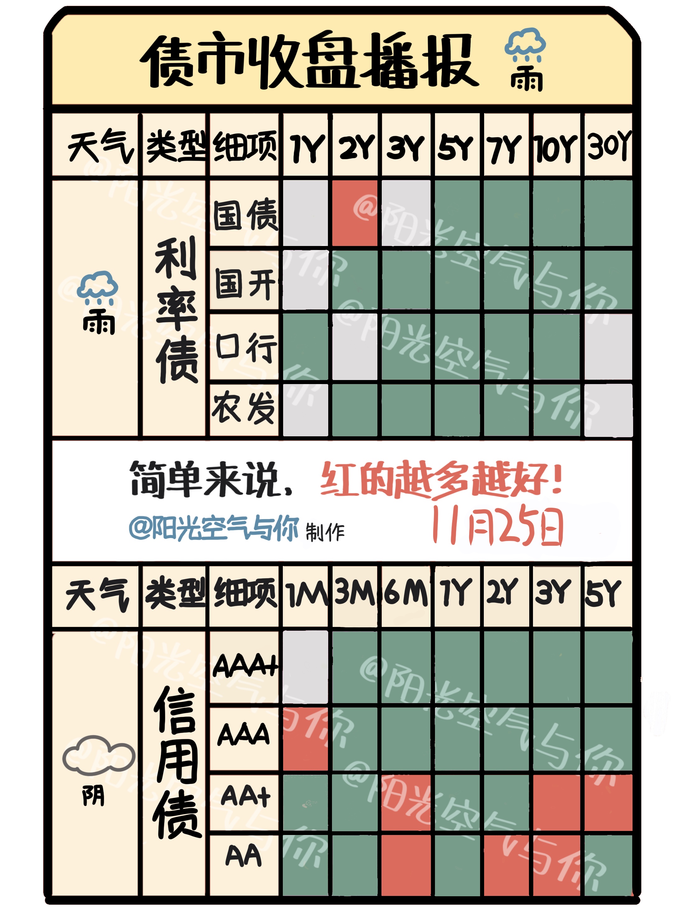 个人债基策略:《11.25债市两点半丨双债阴雨连绵,还有机会吗?加减仓提醒! 》(点击蓝字可阅读)