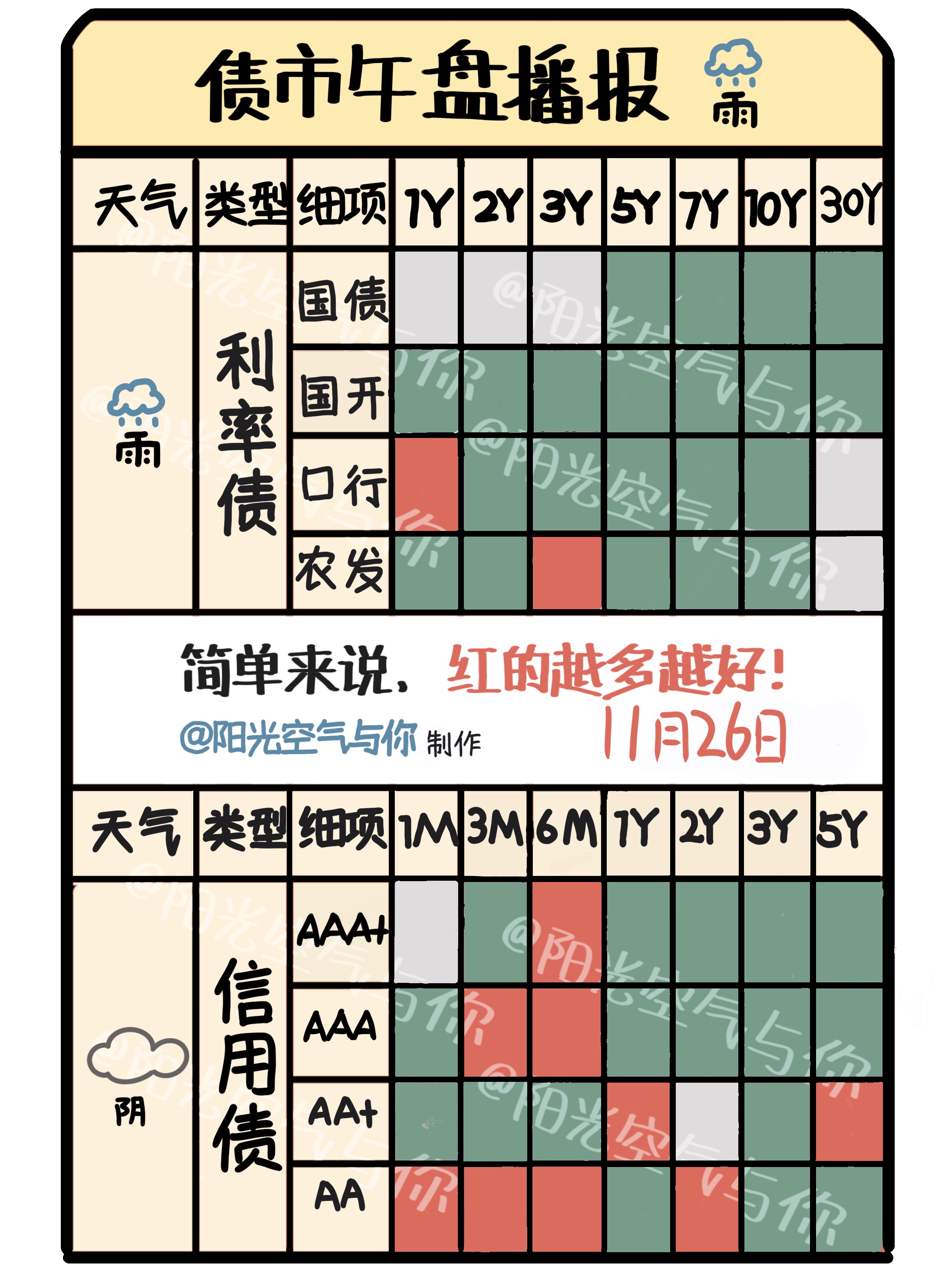 跟阳光个人周末债市前瞻判断的基本一致,周二、周三这两天债市会偏弱一些,不过跌幅还是比预期的更大一些。看看午后能不能拉升一些,或是视情况加一些。更多债市分析、债基操作,14点30分左右尾盘再聊。