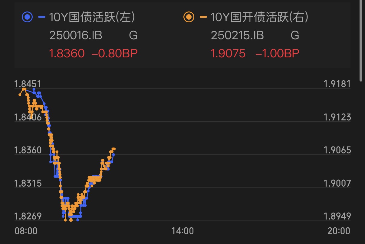 今天债市开局非常好,特别是10年期国开债活跃券收益率一度下行幅度下行超过2BP,可惜盘中随着A股市场上涨还是回落了一半左右,有点可惜了。