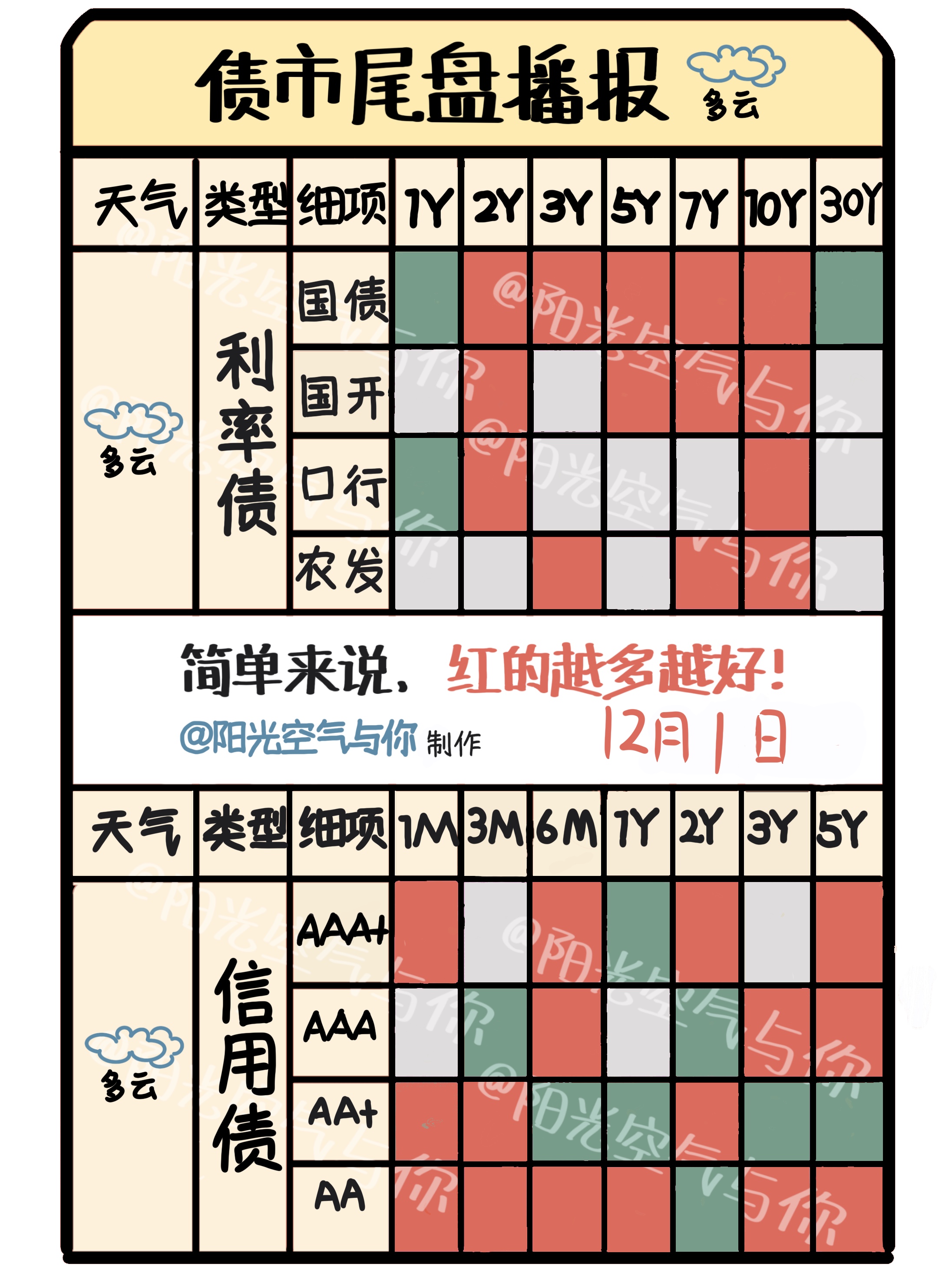 (2)12月主要变量之一估计还是公募基金赎回费率新规,何时落地,以及实际标准是否符合市场预期。其次,就是预计明天17点公布的央妈买债规模了。当然了,还有就是股债跷跷板效应虽然有所减弱,但是依然在影响债市。