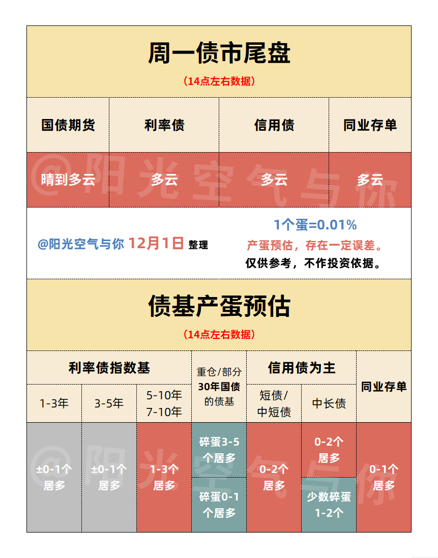 尾盘产蛋预估:纯债基金小涨小跌都有,混债基金大多数有望产蛋(上证指数上涨0.38%,中证转债上涨0.08%)。17点30分左右还有一次债基收盘预估。