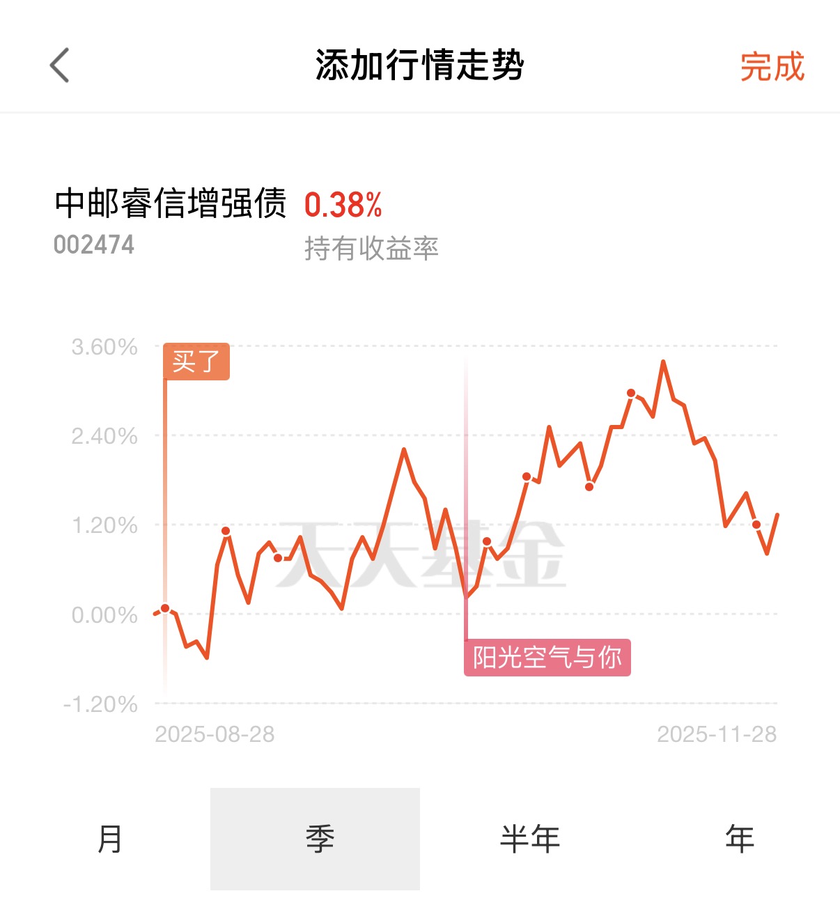 基金吧:$中邮睿信增强债(OTCFUND|002474)$、$中邮纯债恒利债券C(OTCFUND|002277)$、$银河领先债券A(OTCFUND|519669)$、$银河领先债券C(OTCFUND|017763)$、$永赢稳健增强债券C(OTCFUND|014089)$、$博时裕乾纯债债券C(OTCFUND|002404)$、$华泰保兴安悦债券C(OTCFUND|020741)$、$方正富邦鸿远债券C(OTCFUND|015909)$、$南方中债7-10年国开行债券指数E(OTCFUND|013594)$、$鹏华丰禄债券(OTCFUND|003547)$。#3800点的A股值得加仓吗?##12月你看好哪条投资主线?##12月基金投资策略##选基攻略##好基已就位#