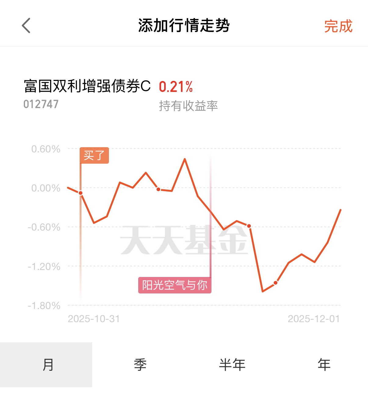 基金吧:$富国双利增强债券C(OTCFUND|012747)$、$富国双利增强债券A(OTCFUND|012746)$、$富国久利稳健配置混合E(OTCFUND|019370)$、$富国中债7-10年政策性金融债ETF发起式联接E(OTCFUND|019596)$、$华泰保兴安悦债券C(OTCFUND|020741)$、$方正富邦鸿远债券C(OTCFUND|015909)$、$南方中债7-10年国开行债券指数E(OTCFUND|013594)$、$鹏华丰禄债券(OTCFUND|003547)$、$永赢稳健增强债券C(OTCFUND|014089)$、$富国优化增强债券E(OTCFUND|018980)$#选基攻略#。#12月基金投资策略##操作笔记##好基已就位#