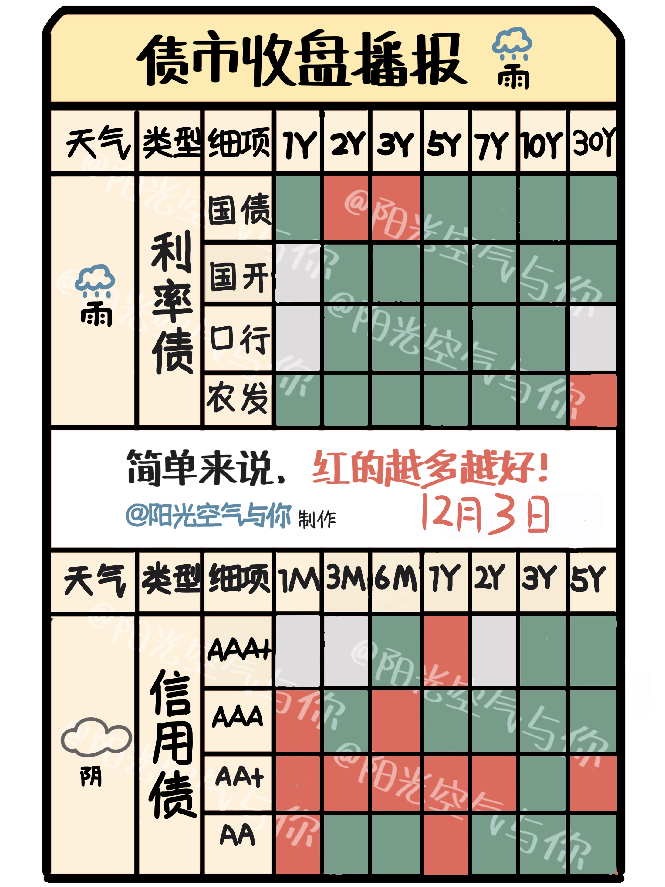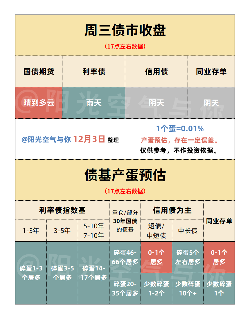 个人债基思路:《12.3债市尾盘丨双债阴天,性价比高未必涨?个人操作思路! 》(点击蓝字可阅读)