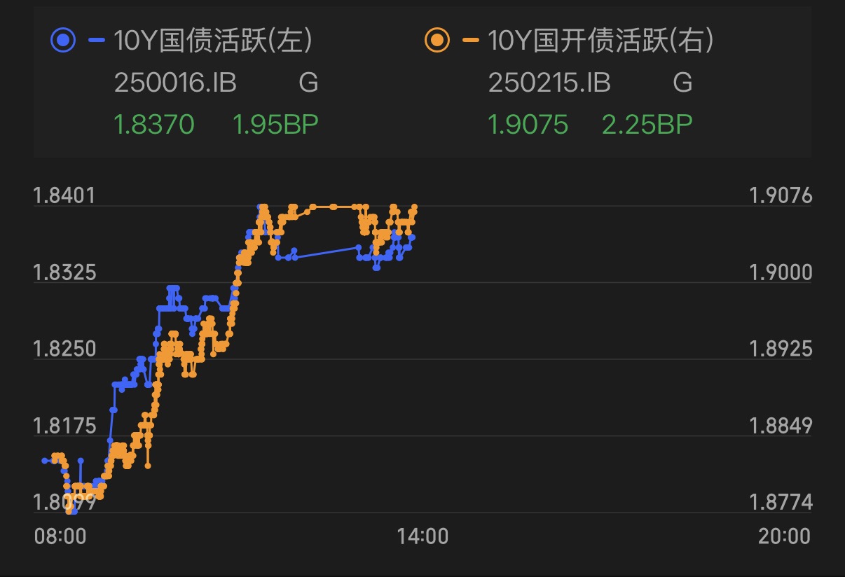 可惜了,利率债午后还是雨天。目前10年期国债活跃券收益率上行接近2BP左右,全靠昨天17点之后的涨幅抵消一部分了,要不然这雨就有点大了。