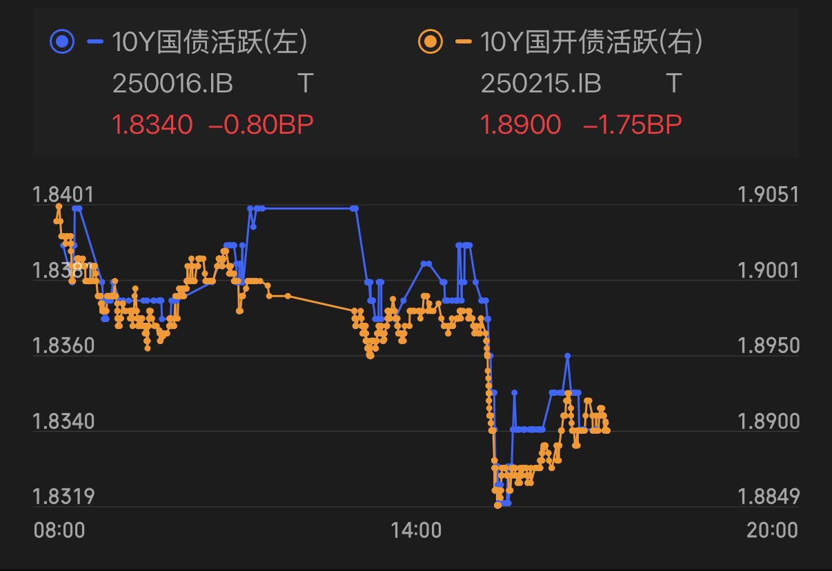 太好了,利率债15点之后快速拉升!10年期国开债活跃券收益率一度下行超2BP,可惜还是缩窄了一些。