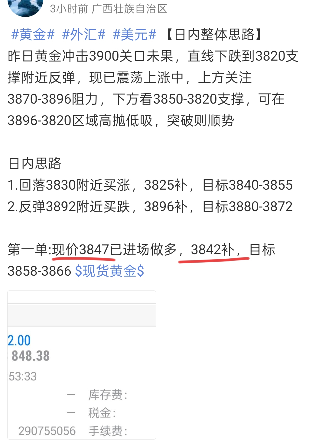 【多单收米5400美金】1.回落3842加仓进场的多单和第一单3847的多,全部