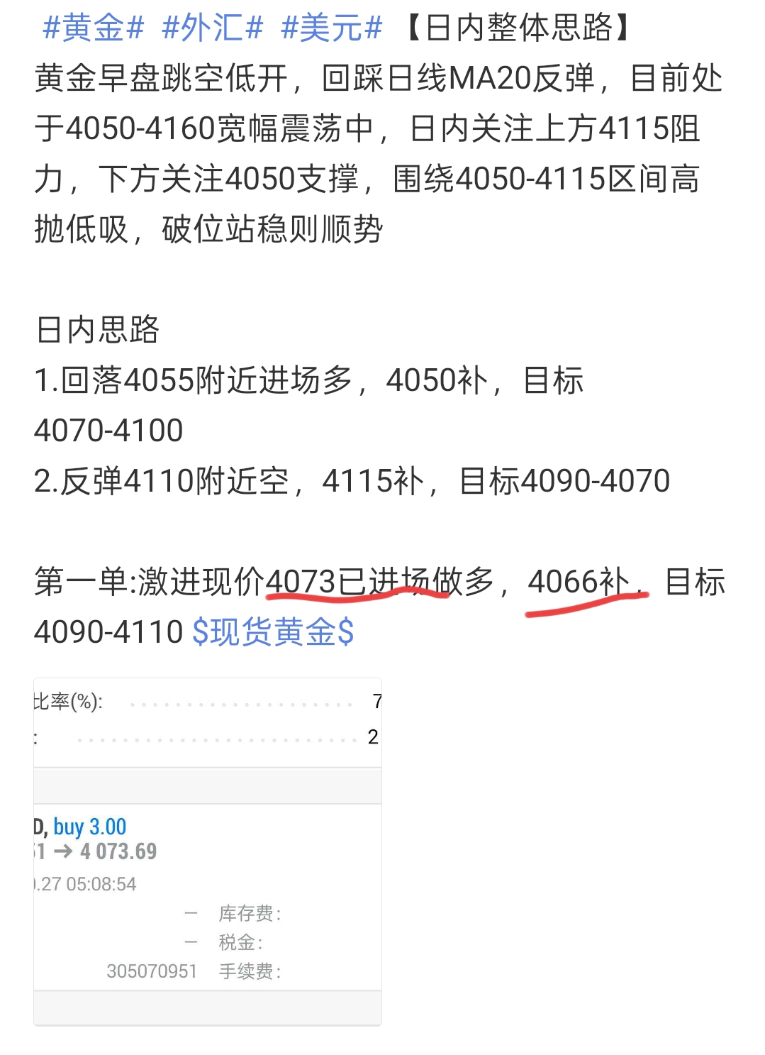 回落4066加仓进场多,第一单4073的多单继续持有,统一保本防守4069,到4080可出高留低,继续向上看目标4090