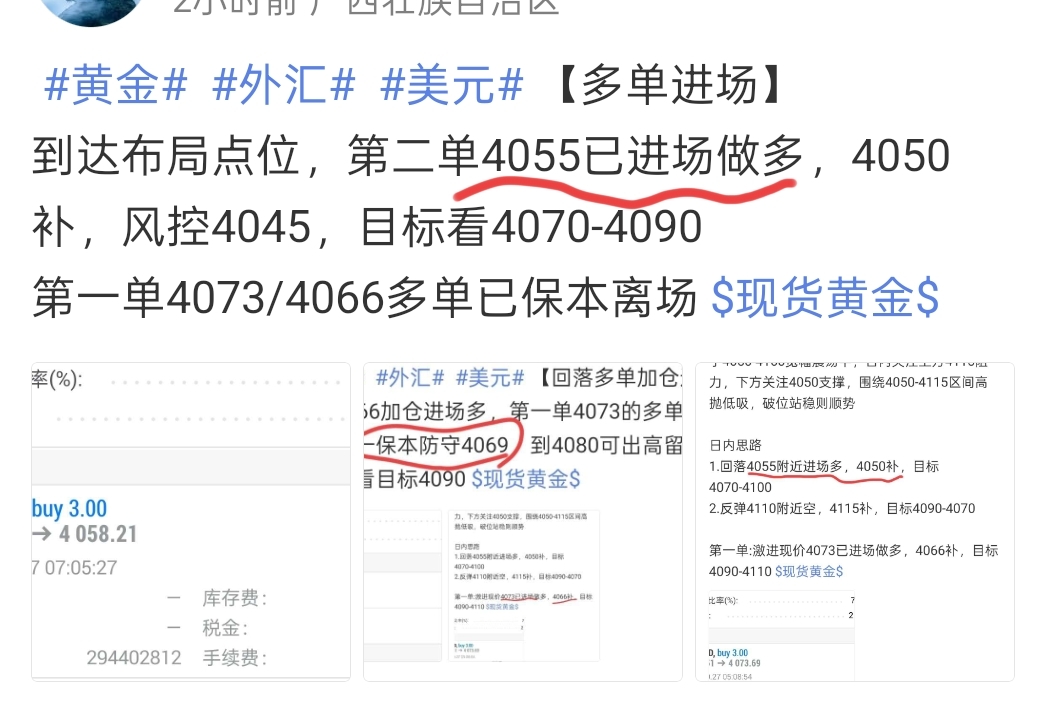 【多单减仓进账3700刀】1.第二单4055进场的多单,在4080减仓,拿下25