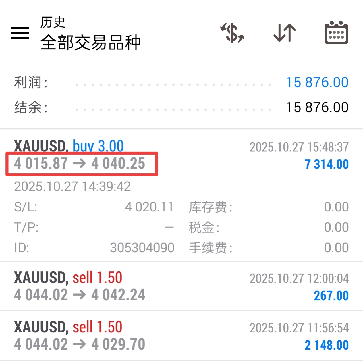 1.第四单精准抄底4015进场的多单,在4040离场,拿下25个点,进账7300$