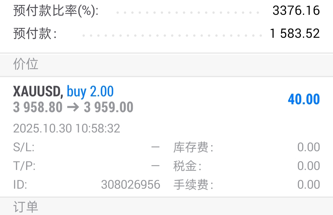 【多单进场】第二单:现价3958已进场做多,防守3948,目标3970-3980