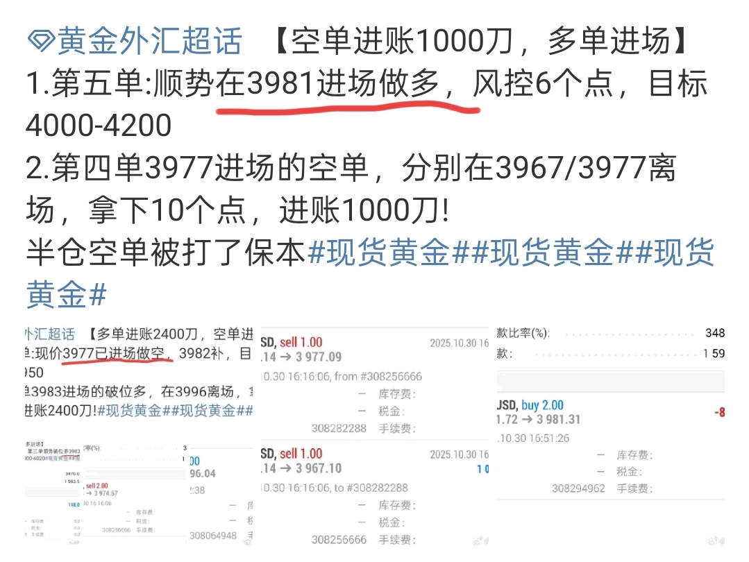 1.第六单:现价3999已进场做空,4005补,风控十个点,目标3975-3960
