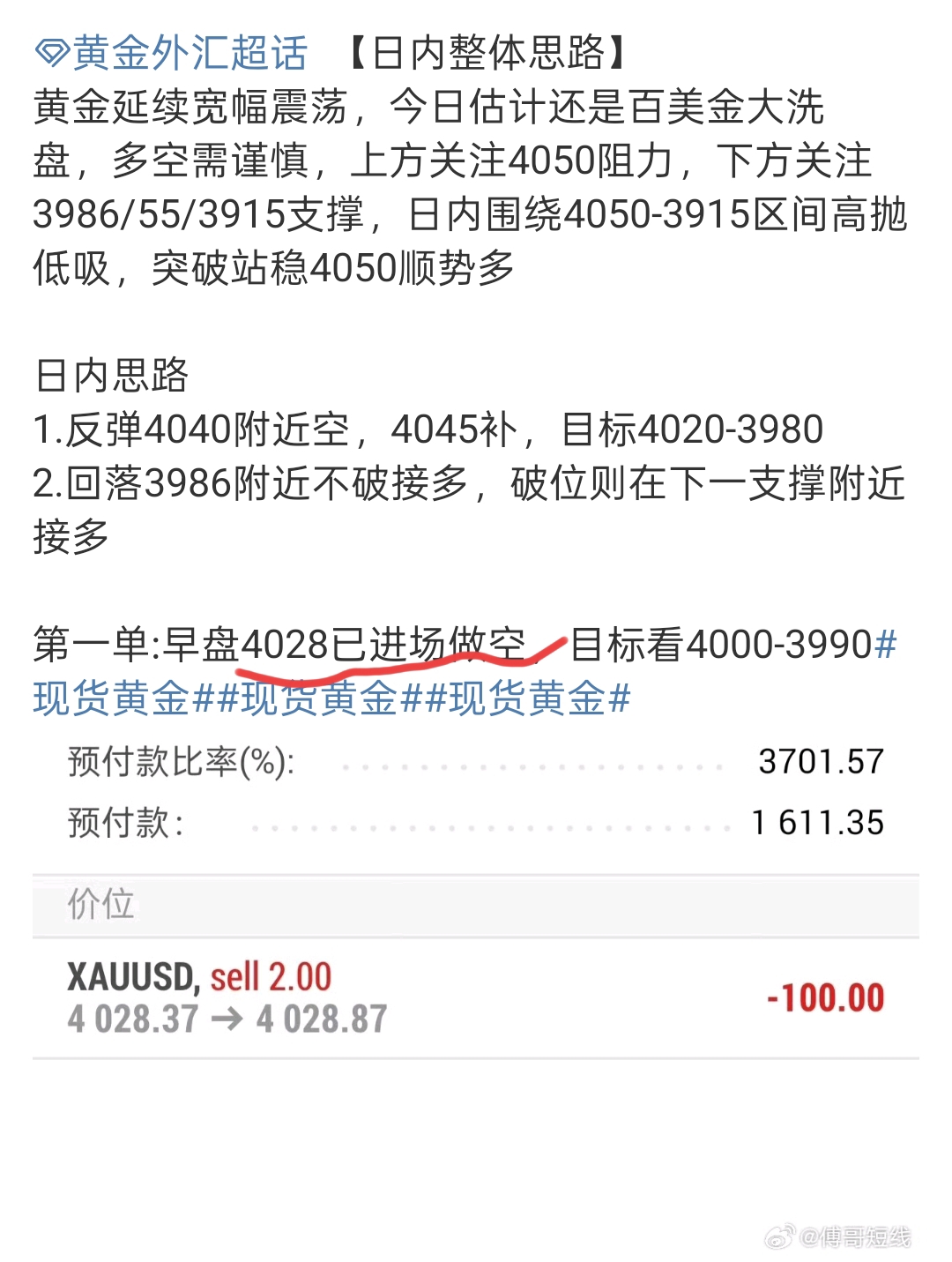 【空单进账2200$】1.第一单4028进场的空单,在4005减仓,拿下23个点
