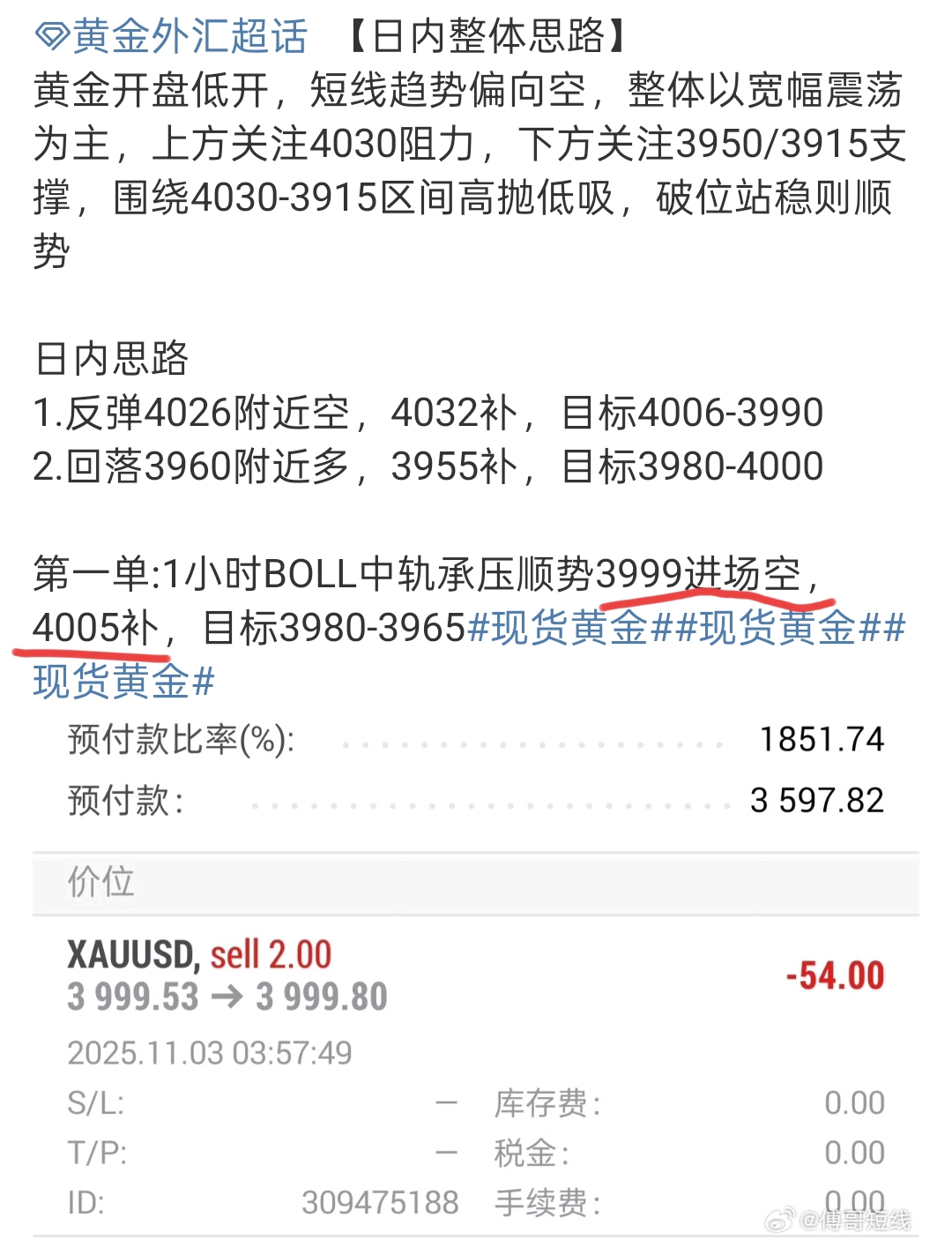 【1小时BOLL中轨承压加仓进场】反弹4005已加仓进场做空,第一单3999进场