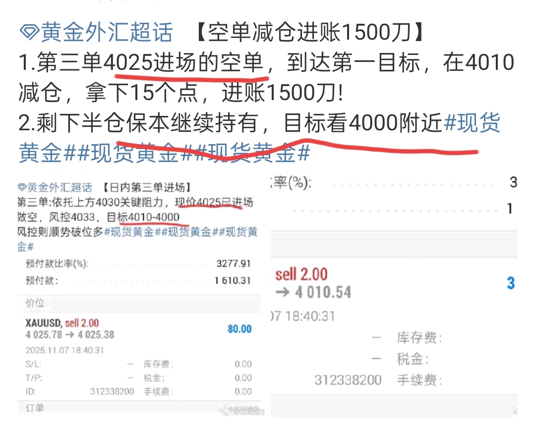 第三单4025进场的空单,分别在4010/3994全部离场,拿下46个点,进账4500刀!