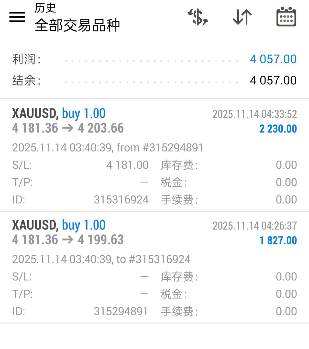 1.第一单4181进场的多单,分别在4199/4203离场,拿下40个点,进账4000刀!