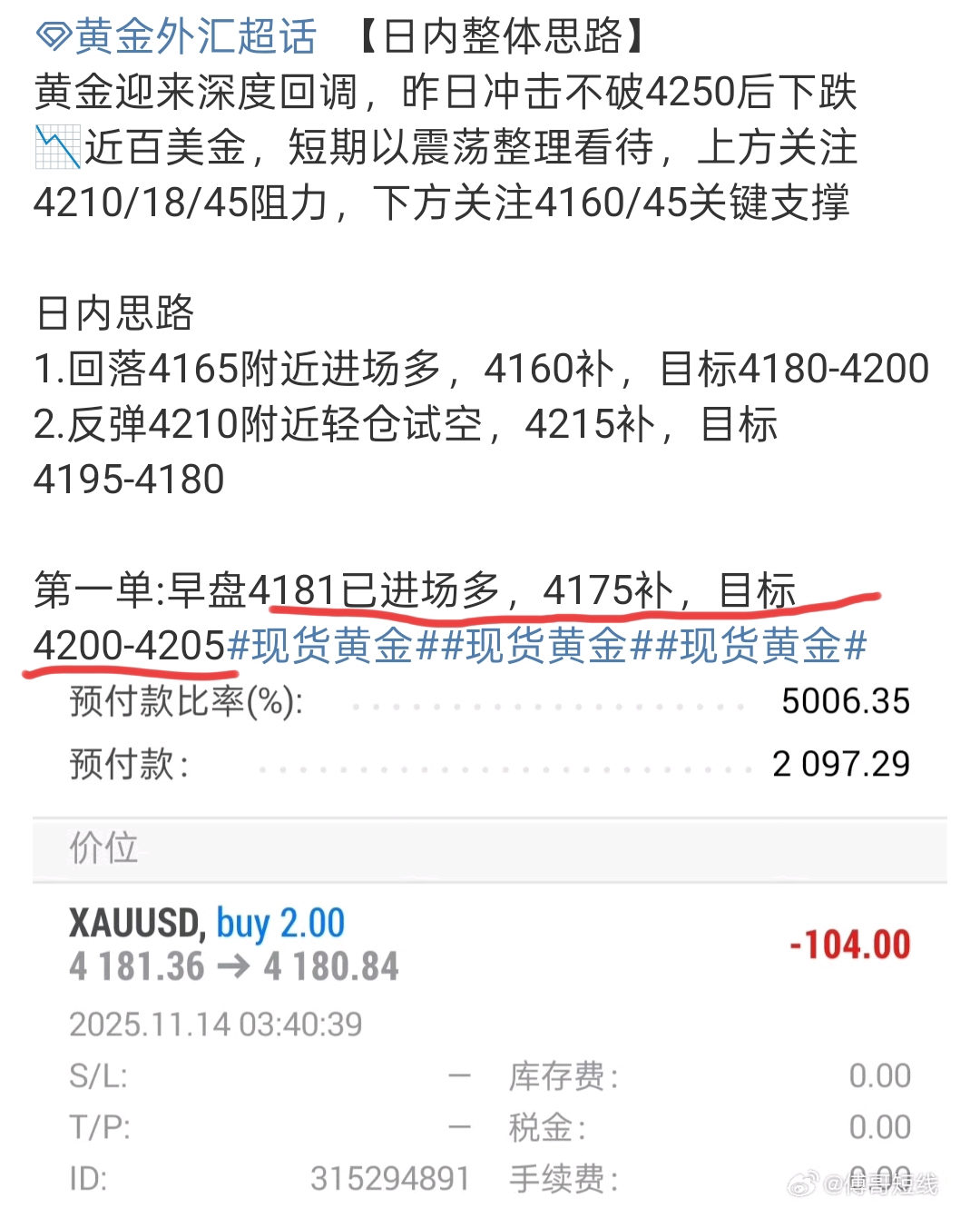 【开门红,多单拿下4000刀】1.第一单4181进场的多单,分别在4199/42