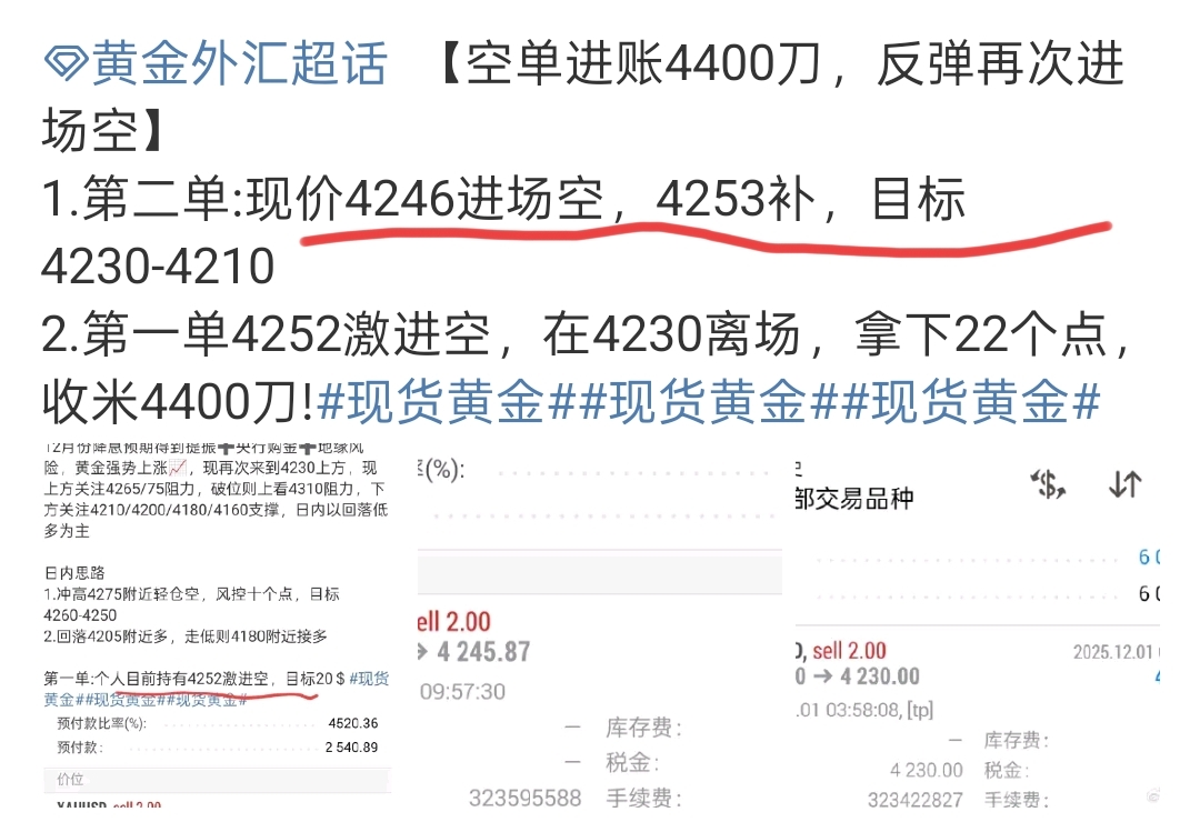 第二单4246/53进场的空单,在4239离场,整体小赢1200刀!
