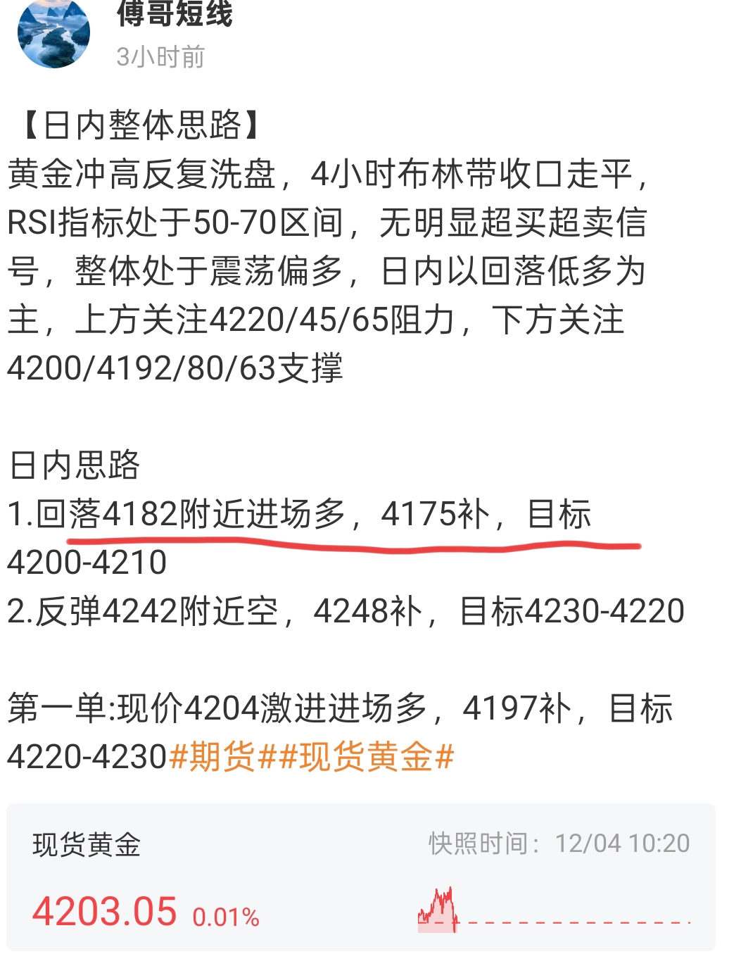 【多单进场】第二单:到达日内布局点位,4182已进场接多,4174补,目标420
