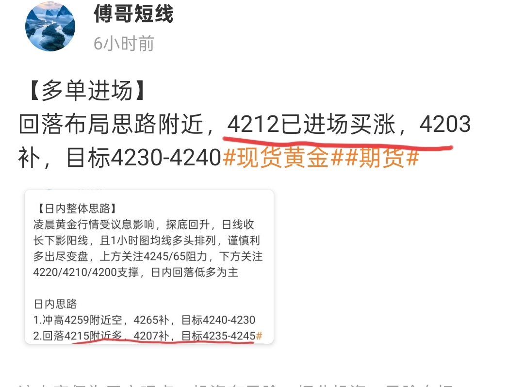 2.目前已空仓观望,下一单预计4240附近空或者回落4203附近多!