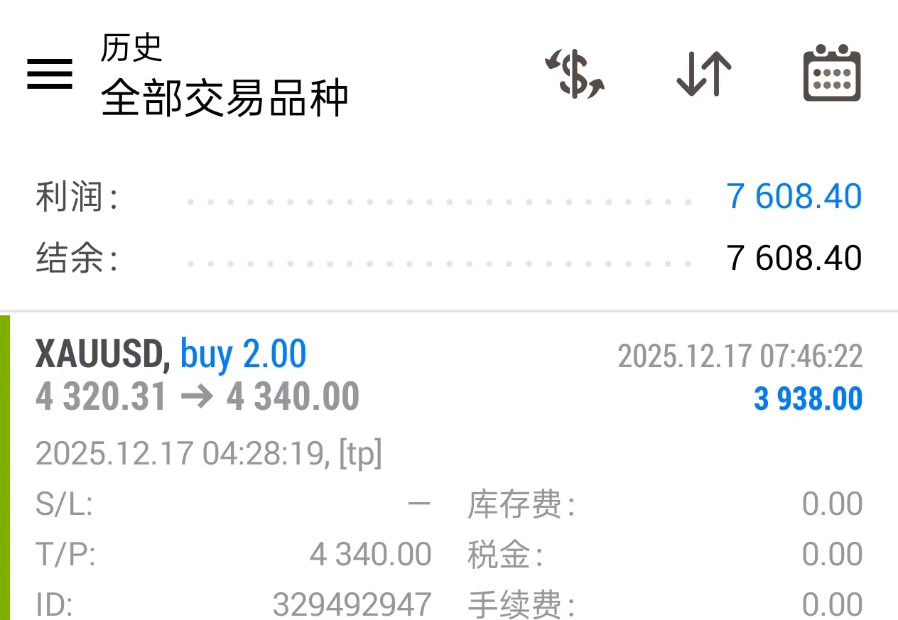 第一单4320进场的多单,在4340离场,拿下20个点,进账4000刀!