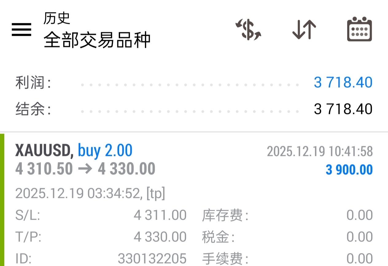 【多单拿下20$】第一单4310进场北上,在4330离场,拿下20$,进账390