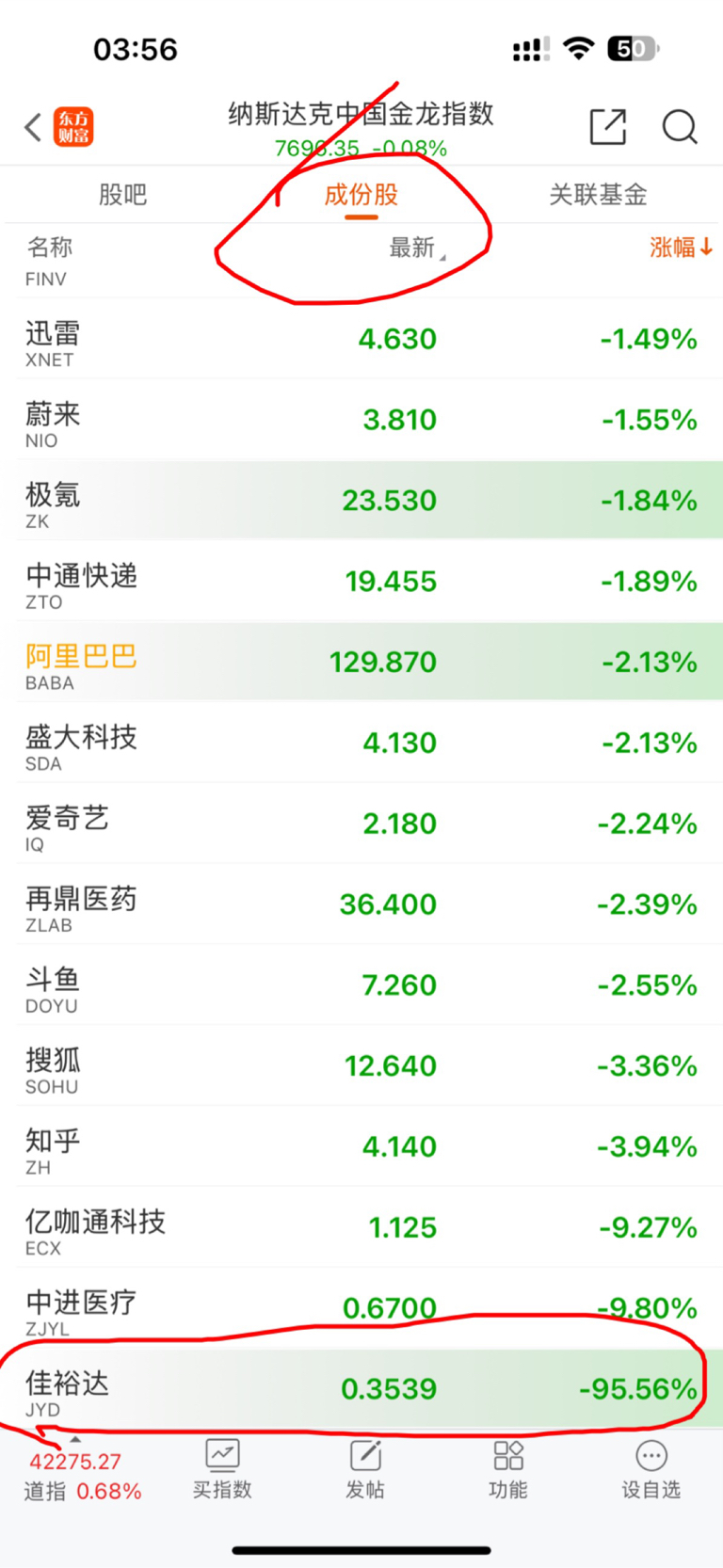 $纳斯达克中国金龙指数(NDI|HXC)$ 这个拖后腿,怎么红,这个票咋了?