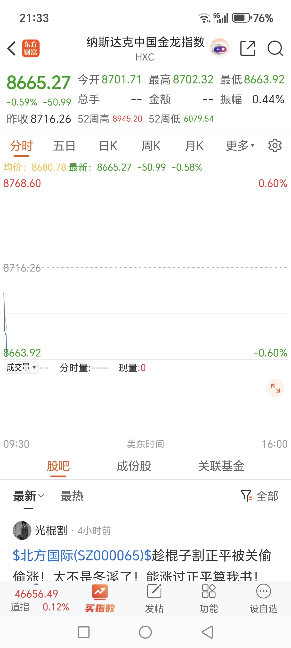 $纳斯达克中国金龙指数(NDI|HXC)$ $上证指数(SH000001)$ $恒生指数(QQZS|HSI)$ 今夜中国金龙指数低开低走,是否预示着明天港股也会低开低走吧?