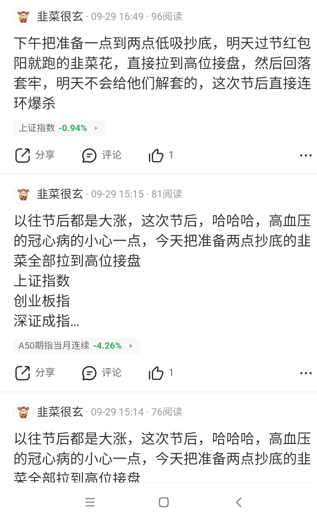 温馨提示: 1.根据《证券法》规定,禁止编造、传播虚假信息或者误导性信息,扰乱证券市场;2.用户在本社区发表的所有资料、言论等仅代表个人观点,与本网站立场无关,不对您构成任何投资建议。用户应基于自己的独立判断,自行决定证券投资并承担相应风险。《东方财富社区管理规定》
