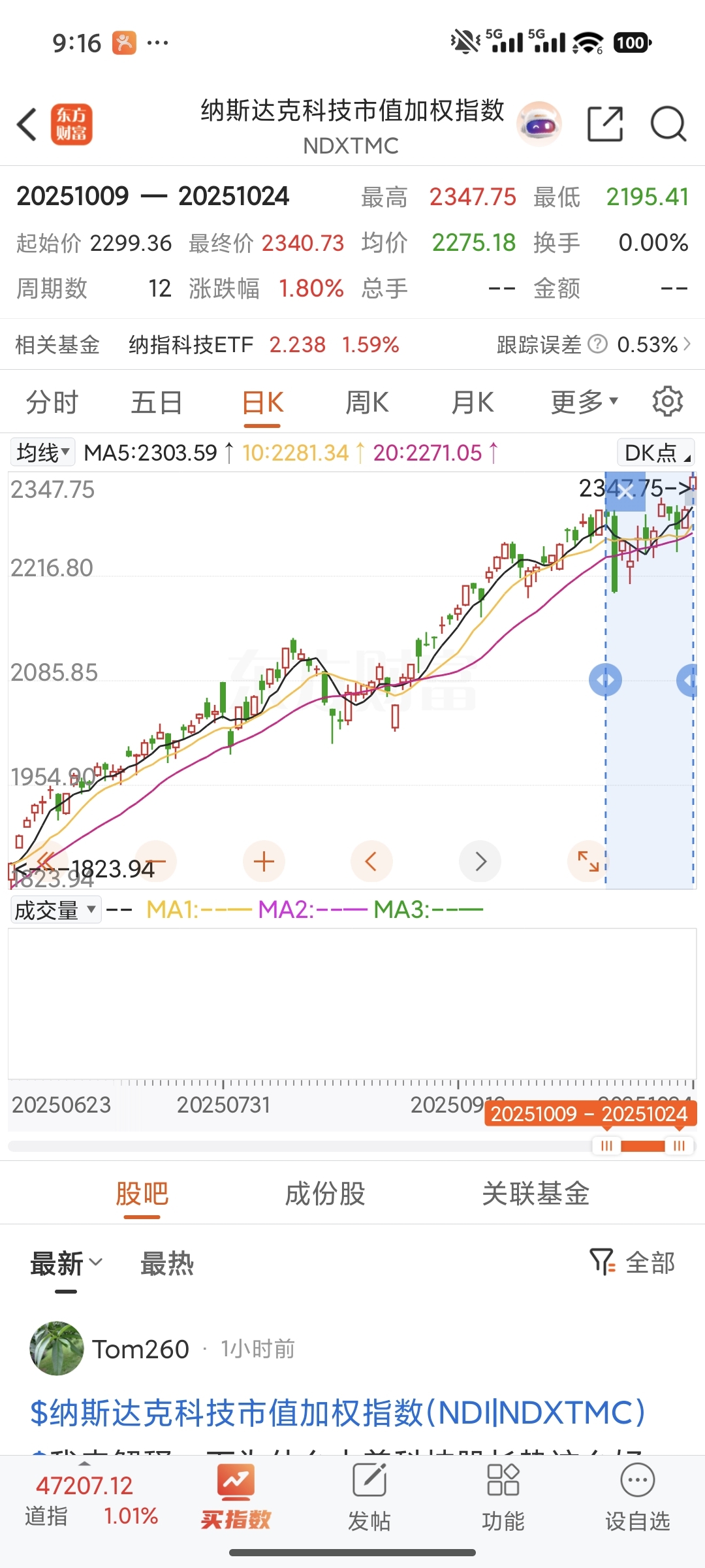 $纳斯达克科技市值加权指数(NDI|NDXTMC)$ 半个月才涨了1.8%,周一又要回调,麻了