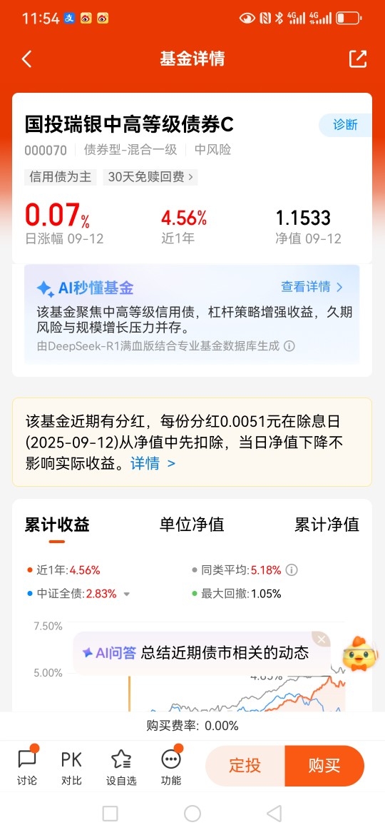 3、8月11号公告显示的是国投瑞银中高等级债实施今年的第7次分红。