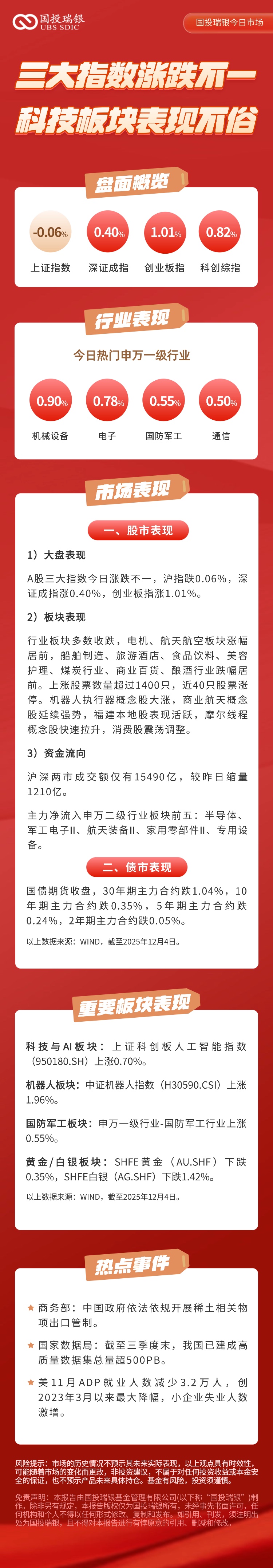 12月4日:三大指数涨跌不一,科技板块表现不俗!