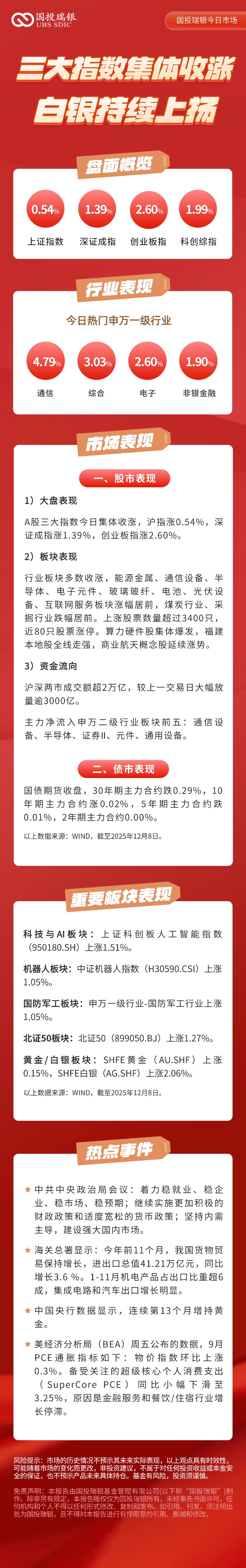 12月8日:三大指数集体收涨,白银持续上扬