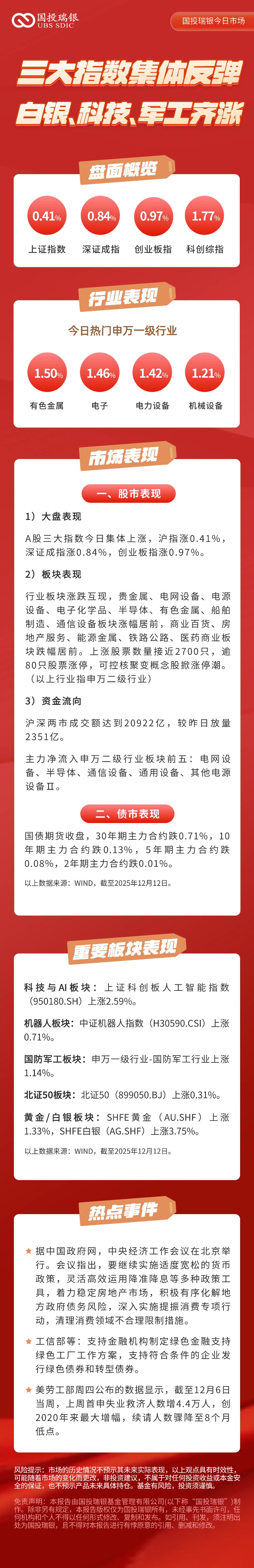 12月12日:三大指数集体反弹,白银、科技、军工齐涨