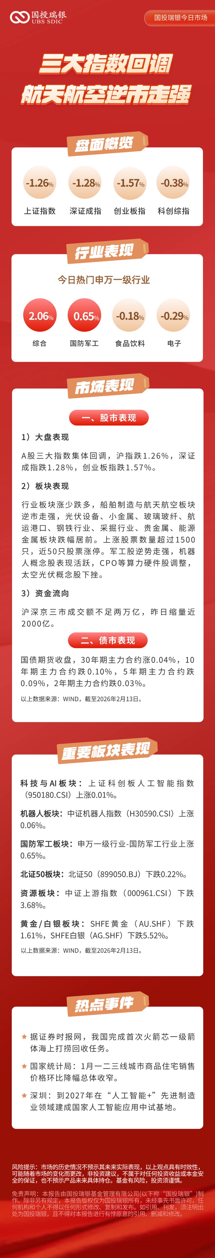 2月13日:三大指数回调,航天航空逆市走强