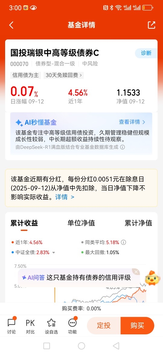 3、8月11号公告显示的是国投瑞银中高等级债实施今年的第7次分红。