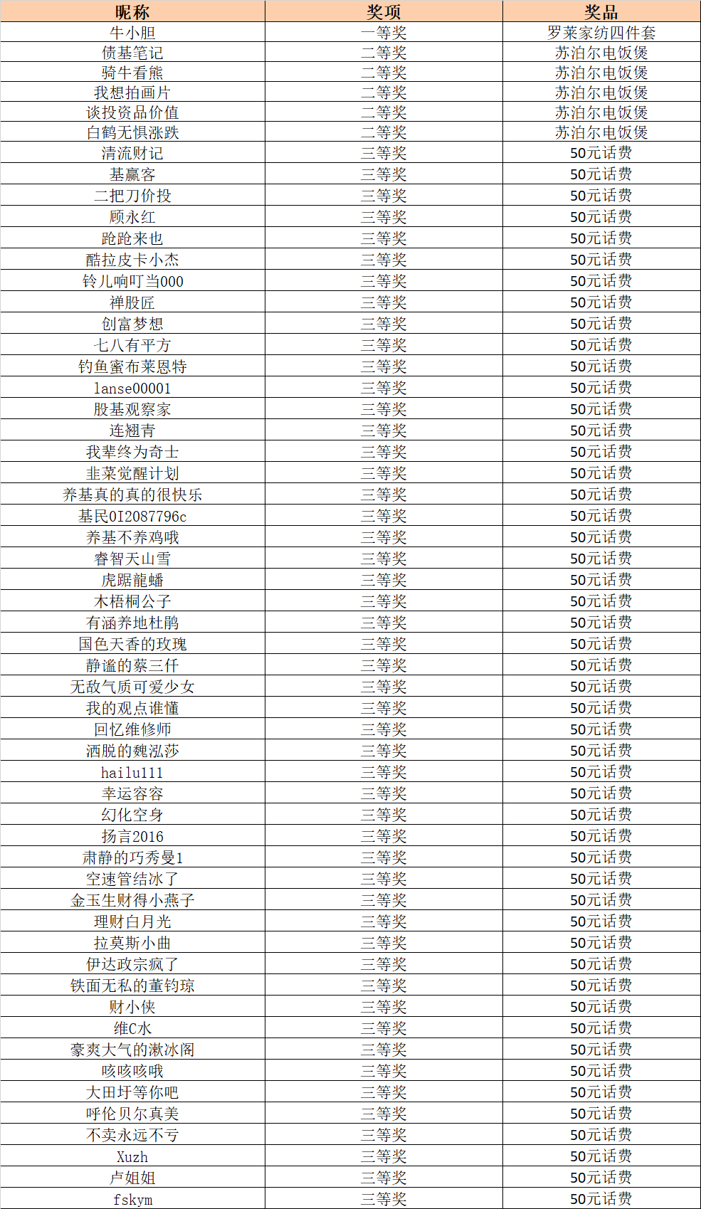 为了回馈小伙伴们的热情,现公布本次获奖的用户名单~
