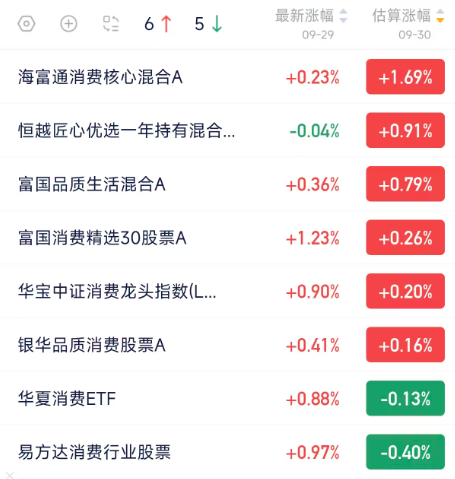 消费基金估值午间快报:期待收市红盘,持好基从容迎假期
