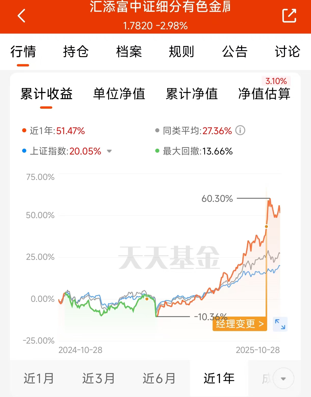 有色行情起来的时候,选对工具很重要。我关注的$汇添富中证细分有色金属产业主题ETF发起式联接C$(019165),近半年涨了57%,表现挺突出。它跟踪的指数在成分上侧重铜(30%)和黄金(14%),这跟一些同类指数不太一样。当前环境下,铜的供应约束和需求潜力是看点,黄金也有其独特的配置价值。市场虽有波动,但金属作为重要资源,其长期价值重估的脉络是清晰的。对于普通投资者来说,通过这样的基金一键布局有色板块,或许是个省心的方法。机会不等人,可以多看看。#科技热点摊开业啦#