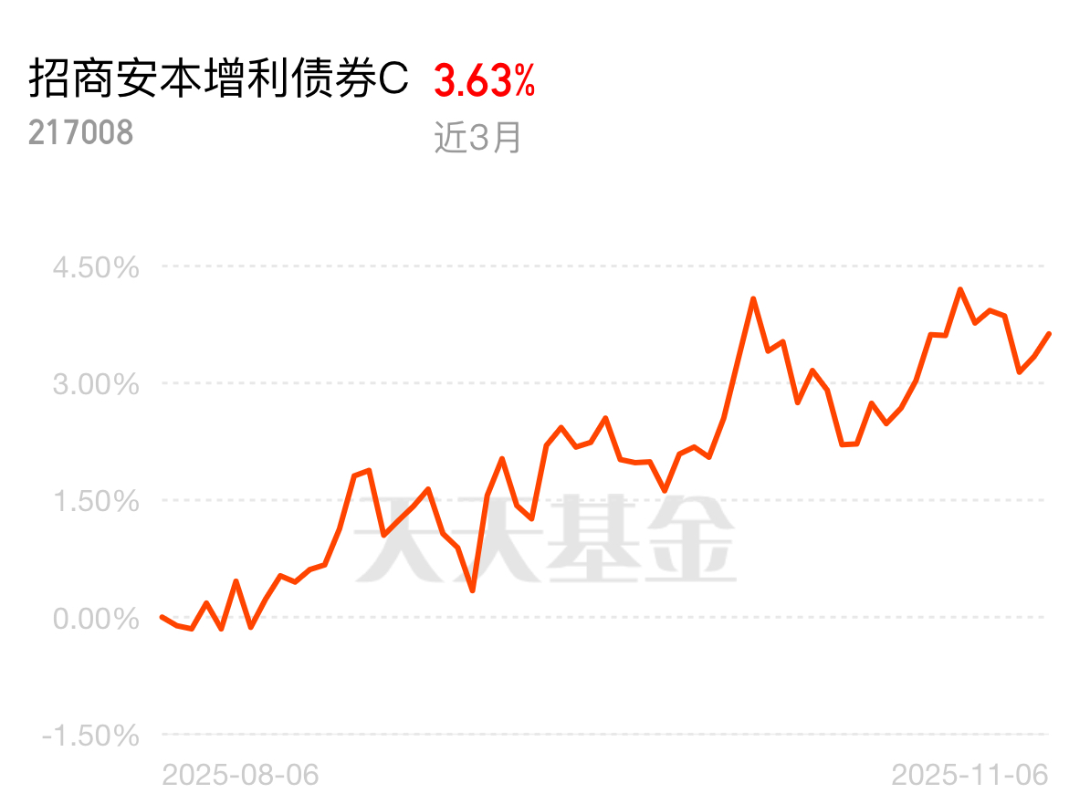 最近不少人从高波动的权益类产品中抽身,转而投向稳健债券基金。招商安本增利债券C近三个月收益3.63%,收益稳定不折腾,让钱在安全的前提下慢慢增值,理财就该这么安心。