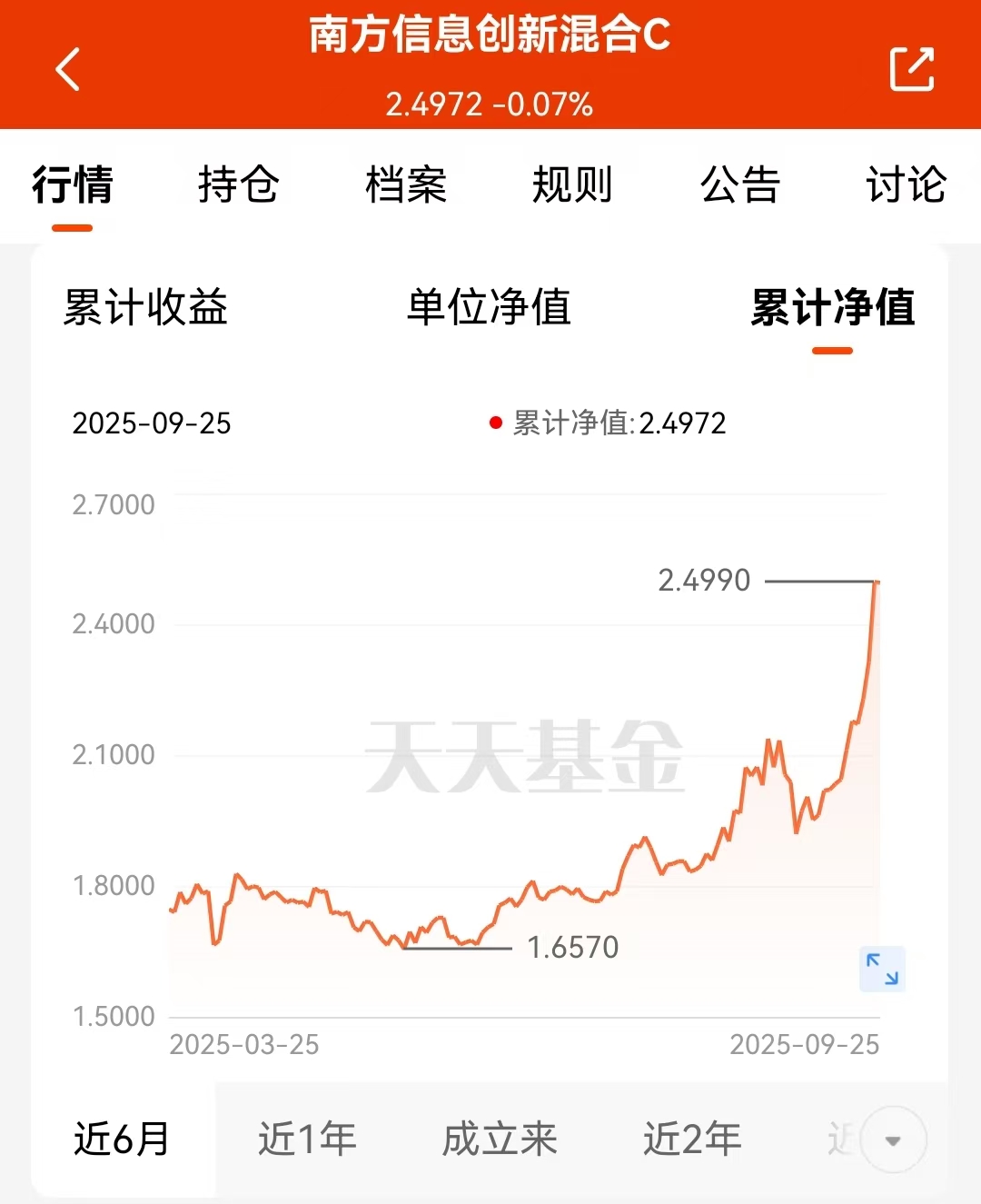 看看$南方信息创新混合C$(007491),近一年直接干到了115%多的收益,这哪是基金啊,简直像是找到了印钞机!现在市场热度这么高,不买点这种能抓行情的产品,感觉就像错过了几个亿。它主要搞的就是半导体那些,听说这个行业现在正处于一个什么周期反转的早期,明年可能更厉害。我现在就感觉,现在上还不晚,热度在这摆着呢,千万别手软。#特朗普挥关税大棒:药品或遭高关税#