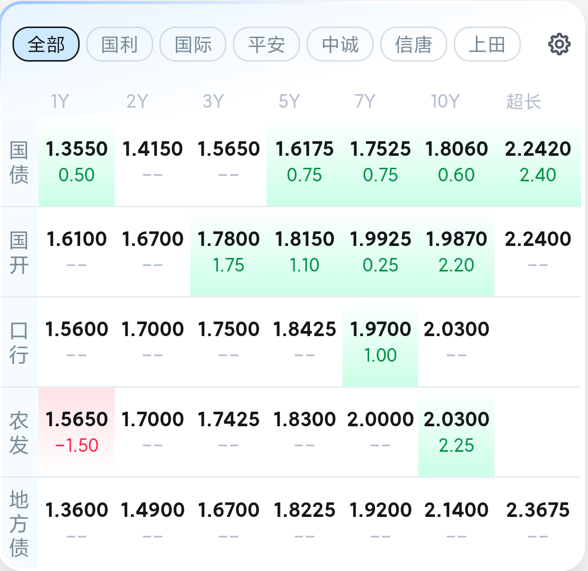 今日A股三大指数全天震荡走强,9点半后在股债跷跷板的效应下,银行间主要利率债收益率开启单边上行行情,信用债转为多云,同业存单转为晴天。