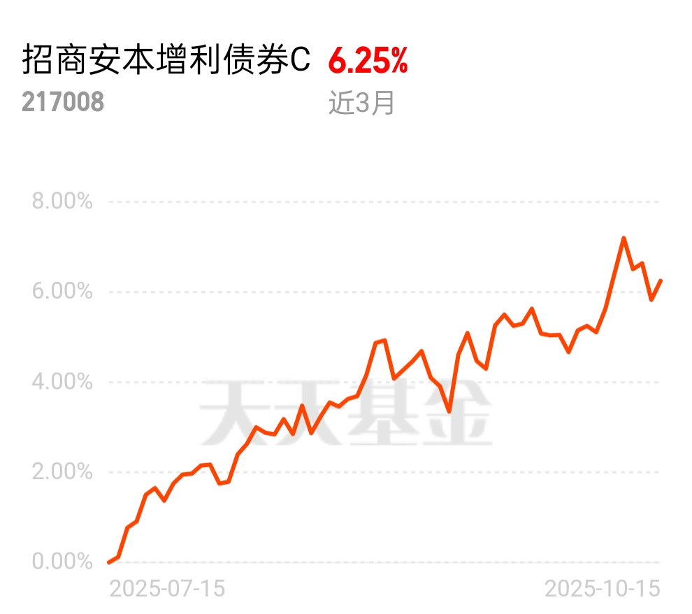 权益行情没个准头,波动得让人睡不着,长线是有戏但短期熬不住,债市短期收益也不行。招商安本增利债券 C 给力,昨晚 40 个蛋,近三月 625 个、近六月 1358 个,风险低想增厚收益的,选它准没错。