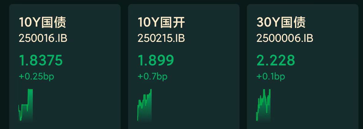 十年期国债收益率:1.8375%,+0.25BP(国债收益率越跌,债市越涨)