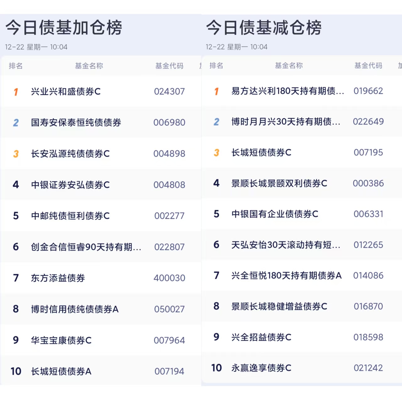 七、债券基金加减仓榜单
