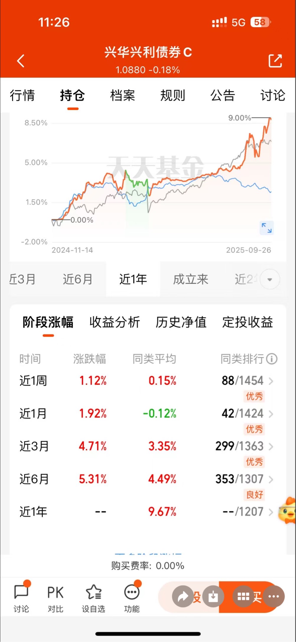 作为追求长期理财的投资者,我觉得兴利二级债基值得长期持有。它债券打底保证收益稳定性,权益部分能分享市场成长,近月排名前 2%,长期下来应该能带来可观的回报。