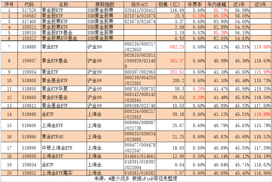 这里整理跟踪实物黄金和黄金股票的ETF及其链接基金,供大家参考(基金净值截至2025/9/30,整理不易,欢迎关注、点赞、转发支持~):